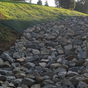 A dry creek directs and disperses water that would normally puddle and stand a few days.